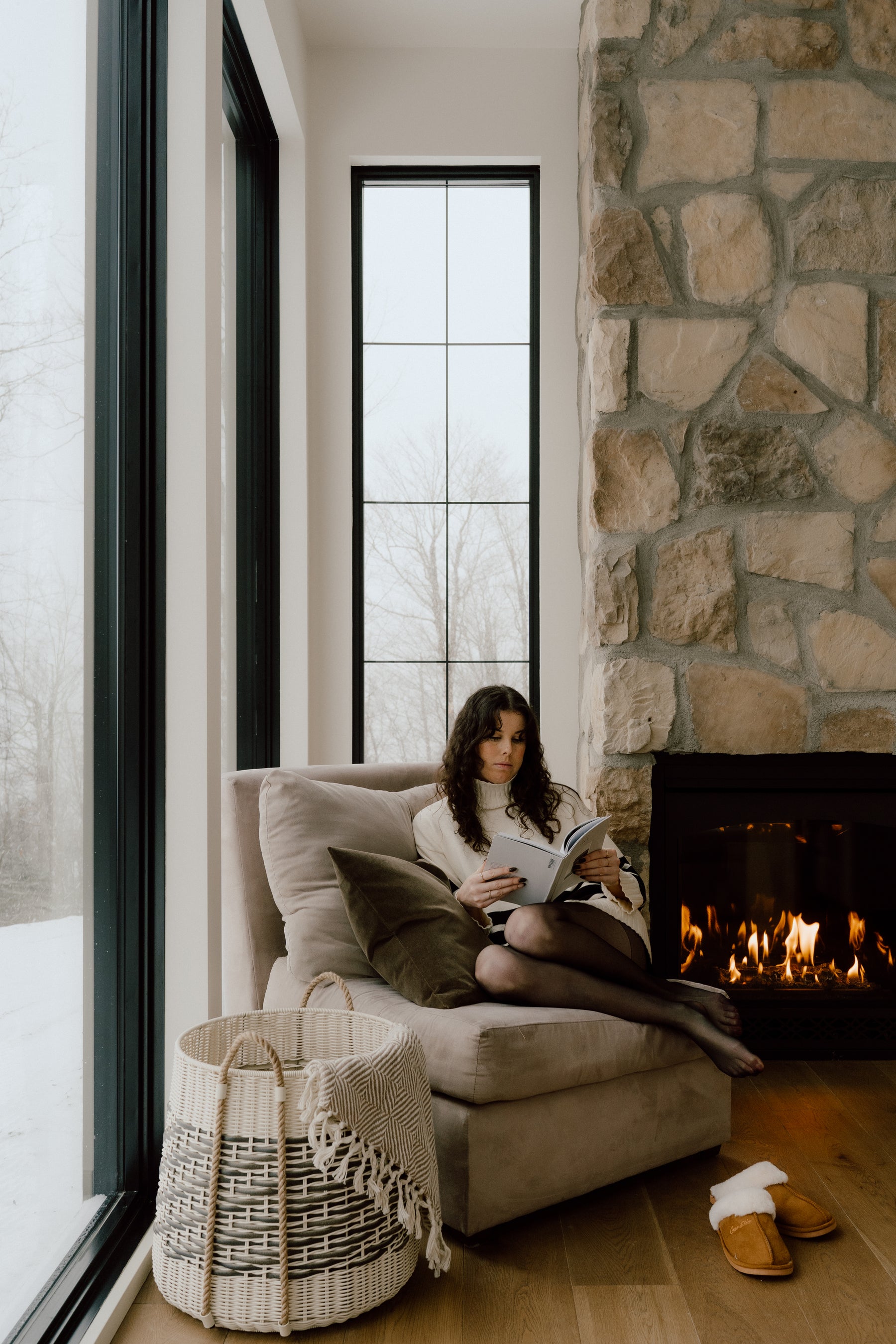 Perché en montagne et ouvert sur des vues panoramiques, le chalet Le Rifugio, dessiné par Jenn de Dessins Drummond, propose une architecture chaleureuse en harmonie avec son environnement. Nos planchers Pedra ont été choisis pour ancrer les espaces intérieurs, apportant caractère, profondeur et une continuité naturelle entre le paysage et l’habitat.
