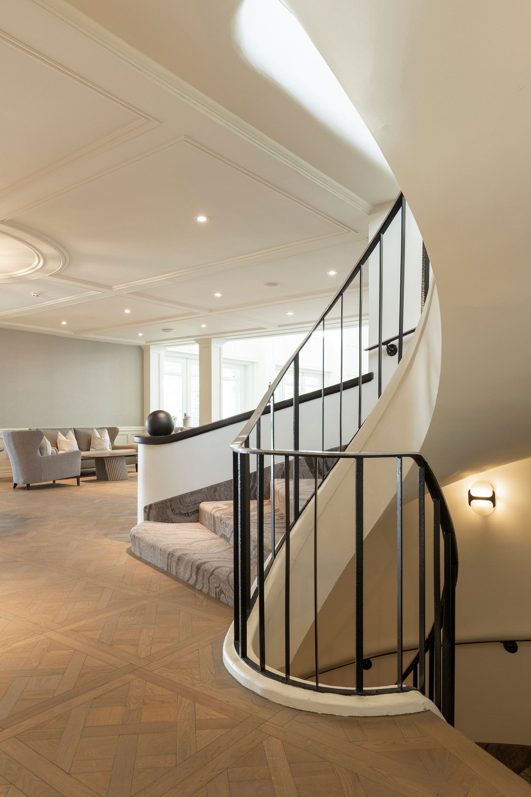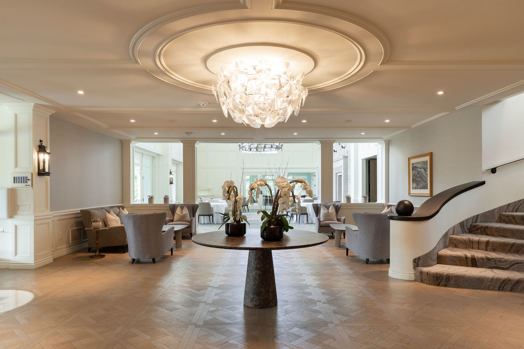 L’exécution, menée par CPL Solutions, a mis en valeur la précision artisanale du parquet, en parfaite continuité avec la vision de l’équipe de design et la rigueur du chantier coordonné par Duquette Construction. Le résultat : un sol qui devient véritablement la toile de fond de l’expérience, à la fois luxueux et discret, ancré dans une tradition revisitée pour un cadre résolument actuel.